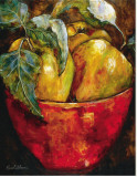 Orignally ordered for our living room, but it didn't work there. Too small. Colors got lost. We replaced an older print in our kitchen and the apples turned out fit perfectly. Fruit in the kitchen! The colors do not shout but bring a bright, rich quality to the room. We really love it.
