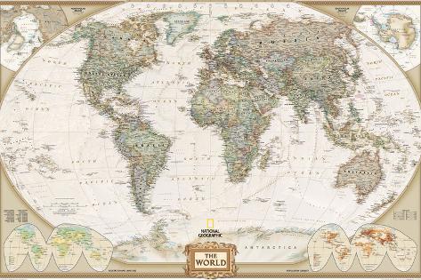 I bought this oversized map as a gift for father's day. We are going to mount it on foam board, frame it and hang it in the dinning room with pins placed at the countries we've visited and countries where we have friends, etc. This is to serve as a great conversation piece and inspiration for the family. The one disappointing factor is that the type on the map looks pixelated, which tells me that the original art was not meant to be enlarged this big. It was a stretch, literally speaking. Thus the art work just didn't give the quality look I expected even though the printing job itself and the paper used was fine. It give that cheap "pirated" look from a third world country. It would be useful if Art.com has a quality control person to inspect the output and suitability of the manipulation of the original art. This map might be OK in the smaller sizes, but I definitely don't recommend the oversized ones.