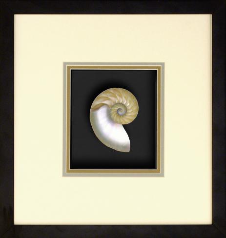 Add the intricacy and subtle sheen of the Chambered Nautilus shell to your wall decor. It is a beautiful organic representation of the golden ratio (a.k.a. phi). The creature that built this shell used the same proportions for each expanded chamber, symbolic of preserving a link from past generations to each new generation. Shadowbox depth is 2.25 inches.