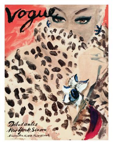 A woman peers over the collar of her leopard-print coat, which is accented by the bright orange background. Carl Erickson's dramatic illustration appeared on the November 15, 1939, cover of Vogue. This giclée print offers beautiful color accuracy. Giclée (French for “to spray”) is a printing process where millions of ink droplets are sprayed onto the paper’s surface creating natural color transitions. The high-quality paper (235 gsm) is a great option for framing with its smooth, acid free surface. Price