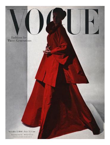 For the November 1, 1946, cover of Vogue, fashion photographer Horst P. Horst captured a model striking a stately pose, wearing an A-line red evening coat and gown. This giclée print offers beautiful color accuracy. Giclée (French for “to spray”) is a printing process where millions of ink droplets are sprayed onto the paper’s surface creating natural color transitions. The high-quality paper (235 gsm) is a great option for framing with its smooth, acid free surface. Price