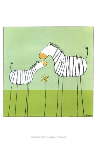 Just as cute but even better in person. Love the greens, the crisp black/white, and the touch of yellowish orange. I seem to be into zebras this year - bought "Zebre et Son Petit de Ndutu" at the same time (and love that, too). This one is playful and ties in with the orange/greens/whites (as in "Thai Spice II") that hang in another section of my efficiency apartment, as well as the black/white prints I seem to keep adding. The door to my bathroom is a medium-reddish-brown and has proven to be the perfect backdrop, being a deeper shade of the noses. The size is perfect for the door and for being the only print in that 6' section. I thought my grand(great)nephews would get a kick out of it. Turns out, I probably do more than they ever would! The simplicity, the colors, the whimsy - they're me to a "T" and I couldn't be more delighted.
