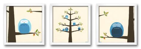 These whimsical owls by Erica J. Vess make an adorable set for a child’s room. Each is 12" x 12" and is finished with a deep wood frame and plexi to protect the art for years to come.