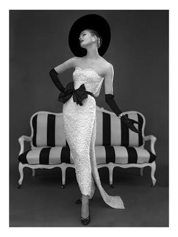 ![]() Model in John Cavanagh's Strapless Evening Gown, Spring 1957Giclee Print