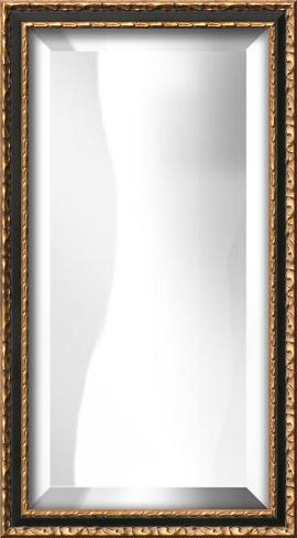 The 10"x20" mirror with 1" bevel is framed with a designer wood moulding that has an aged black center and antiqued ornate gold edging