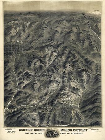 1895, Cripple Creek Mining District 1895c Bird's Eye View, Colorado, United States