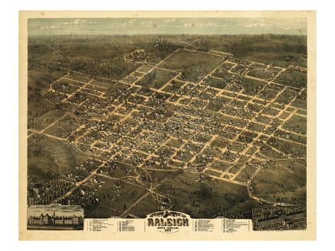 ![]() 1872, Raleigh Bird's Eye View, North Carolina, United StatesGiclee Print