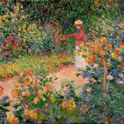 Claude Monets Garden at Giverny (1895) brings to life the vibrant and flourishing beauty of his iconic garden. This impressionist masterpiece features a woman surrounded by blooming flowers in warm tones of yellow, red, and orange, contrasted by cooler greens and blues. The lively brushstrokes capture the movement and harmony of the scene, showcasing Monets talent for portraying natural light and atmosphere. The wall art reflects the charm of Monets private garden in Giverny, which served as a major inspiration for much of his work. Its textured and layered style invites viewers to experience the serenity and color of the lush setting. This giclee print is perfect for adding a touch of timeless beauty to any space, especially for those who appreciate impressionist art or natureinspired themes. Monets legacy as a pioneer of Impressionism is well represented in this vibrant artwork.
