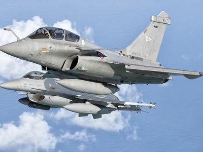A Dassault Rafale of the French Air Force Flys Alongside a U.S. Air Force F-16C Fighting Falcon