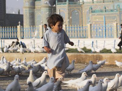 Child Chasing the Famous White Pigeons, Mazar-I-Sharif, Afghanistan