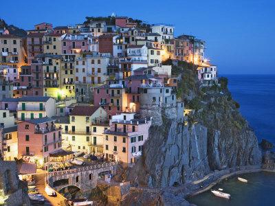 Dusk Falls on a Hillside Town Overlooking the Mediterranean Sea, Manarola, Cinque Terre, Italy