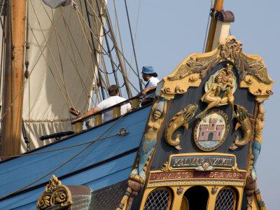 Carved Stern of Tall Ship the Kalmar Nyckel, Chesapeake Bay, Maryland, USA