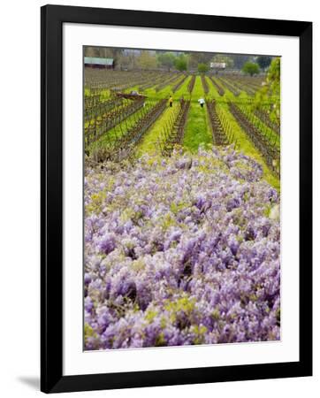 Workers in Vineyards with Wisteria Vines, Groth Winery in Napa Valley, California, USA