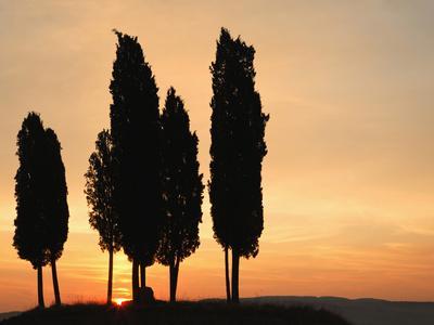 Cypress Trees Silhouetted Against Sunrise Sky, San Quirico D'Orcia, Tuscany, Italy Photographic Print by Adam Jones. Find art you love and shop high-quality art prints, photographs, framed artworks and posters at Art.com. 100% satisfaction guaranteed.