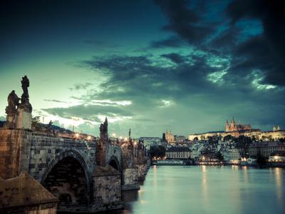 Czech Republic, Prague, Stare Mesto (Old Town), Charles Bridge, Hradcany Castle and St. Vitus Cathe