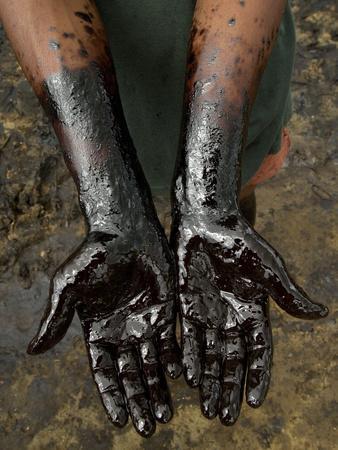 A Chapopero, Literally the Tar Man, Shows His Oil-Covered Hands