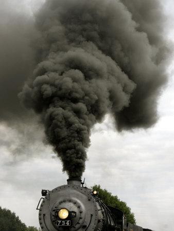 Smoke Billows from the Smoke Stack of Engine No. 734