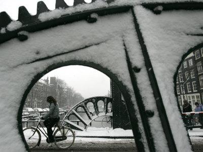 A Cyclist Passes a Draw Bridge as Snow Covers the City Center of Amsterdam Photographic Print. Find art you love and shop high-quality art prints, photographs, framed artworks and posters at Art.com. 100% satisfaction guaranteed.