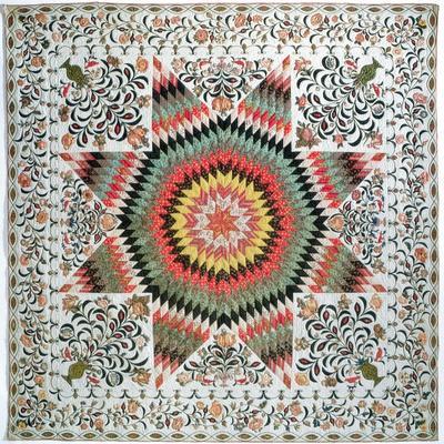 Rising Sun' or 'star of Bethlehem' Applique Quilt from New York, C.1830-50 (Cotton)