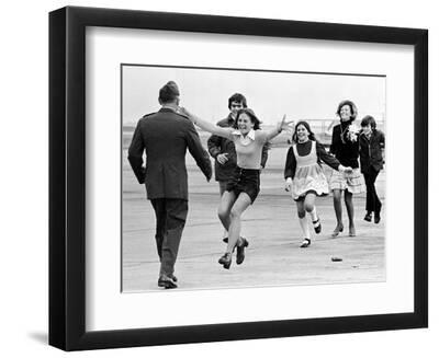 Released prisoner of war Lt Col Robert L Stirm is greeted by his family at Travis Air Force Base in Fairfield Calif as he returns home from the Vietnam War March In the lead is Stirms daughter Lori followed by son Robert daughter Cynthia wife Loretta and son Roger br