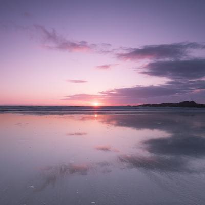 Sunset Reflected in Wet Sand and Sea on Crackington Haven Beach, Cornwall, England, UK, Europe