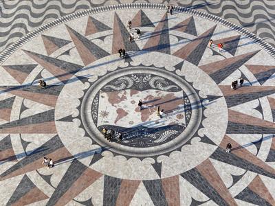 Pavement Map Showing Routes of Portugese Explorers Below Monument to Discoveries, Lisbon, Portugal
