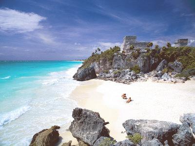 Mayan Ruins Overlooking the Caribbean Sea and Beach at Tulum, Yucatan Peninsula, Mexico