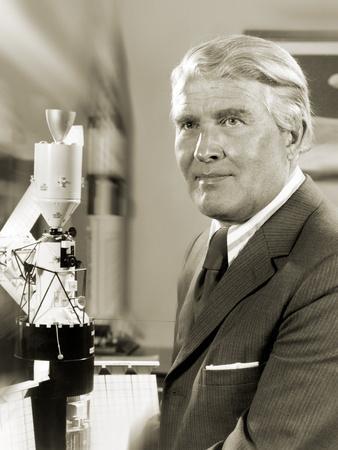 Dr Wernher von Braun (19121977), GermanAmerican rocket pioneer. Von Braun was educated at Zurich and Berlin Institutes of Technology. He started work on rocket design in 1932, becoming technical head of the German Peenemunde research centre in 1938 where he was responsible for the development of the V2 rocket. At the end of the war, von Braun surrendered to the American army and became a leading figure in the American space programme, designing the first US satellite launcher (Jupiter) in 1958. Wernher von Braun received the 1975 National Medal of Science.
