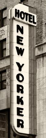 Hotel New Yorker, Signboard, Manhattan, New York, US, Vertical Panoramic View, Sepia Photography