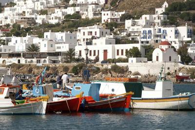 Fishing Boats in the Harbor of Chora, Mykonos, Greece