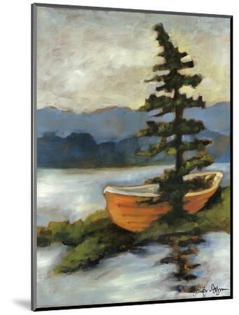 Jennifer Goldbergers Maine Escape I invites viewers to experience the serene beauty of a quiet lakeside scene. The composition features a vibrant orange canoe resting on a lush green patch near calm waters, with a tall evergreen tree anchoring the focal point. Subtle mountains and a soft sky in the background enhance the peaceful atmosphere, blending earthy tones with muted blues and greys. Goldbergers use of painterly brushstrokes and layered textures imbues the piece with a sense of tranquility and connection to nature. The soft, impressionistic style evokes a nostalgic appreciation for outdoor adventures and still moments by the water. This artwork makes an excellent addition to spaces where a calm, natural ambiance is desired, such as a living room, cabin retreat, or reading nook. Perfect for nature enthusiasts or anyone drawn to landscapes with a rustic charm.