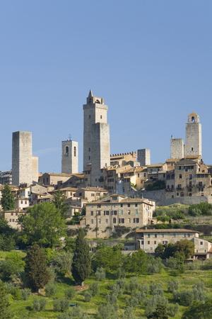 View across Field to Typical Houses and Medieval Towers, San Gimignano, Siena