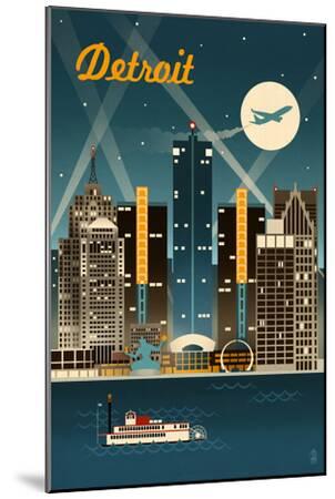 Detroit, Michigan - Retro Skyline