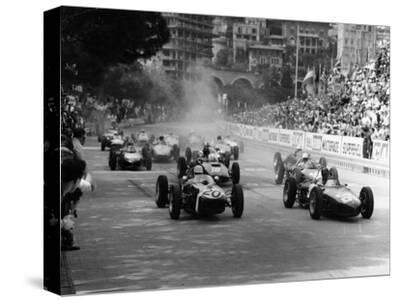 The start of the Monaco Grand Prix Monte Carlo Stirling Moss is driving the number car a Lotus The two cars to the right of him are Ferraris and were driven by Phil Hill and Richie Ginther Moss was the eventual winner