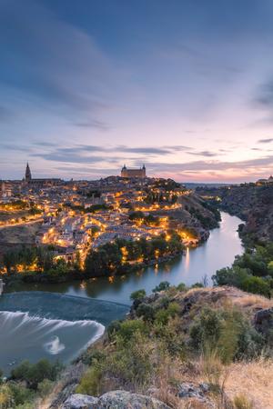 Spain, Castile?La Mancha, Toledo. City and River Tagus at Sunrise, High Angle View