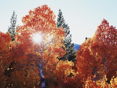 California, Sierra Nevada, Sunset Through Red Color Aspens in Inyo Nf