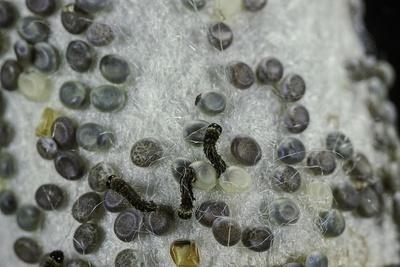 Bombyx Mori (Common Silkmoth) - Eggs with Some Newly Hatched Silkworms Photo Print