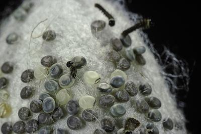 Bombyx Mori (Common Silkmoth) - Eggs with Some Newly Hatched Silkworms