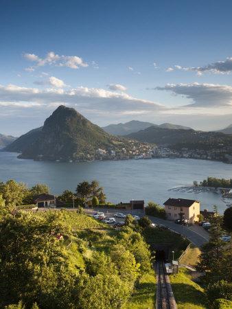 Ticino, Lake Lugano, Lugano, Town View and Monte San Salvador from Monte Bre, Switzerland