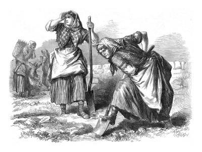 Peasant Women in Roscommon, Ireland, Working in the Field Digging the Earth with Shovels