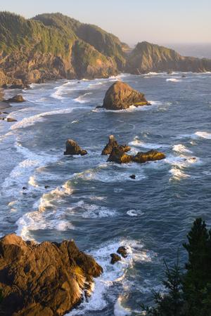 Usa, West Coast, Oregon, State Scenic Corridor, Sunset with Waves Crashing