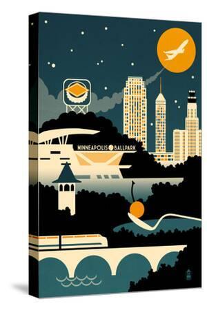 Minneapolis, Minnesota - Retro Skyline (no text) Stretched Canvas by Lantern Press. Find art you love and shop high-quality art prints, photographs, framed artworks and posters at Art.com. 100% satisfaction guaranteed.