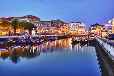 Portugal, Aveiro, Moliceiro Boats Along the Main Canal of Aveiro