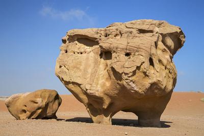 Jordan, Wadi Rum. a Free-Standing Sandstone Feature known as the Bedouin Cow in Wadi Rum.