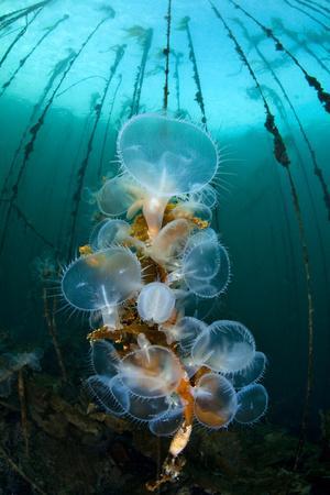 Hooded Nudibranchs (Melibe Leonina) Filter Feeding Beneath Bull Kelp