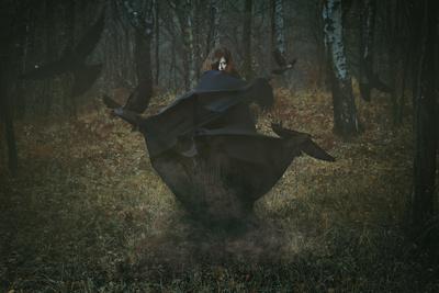 Witch of the Forest with Her Crows . Dark Fantasy and Magic