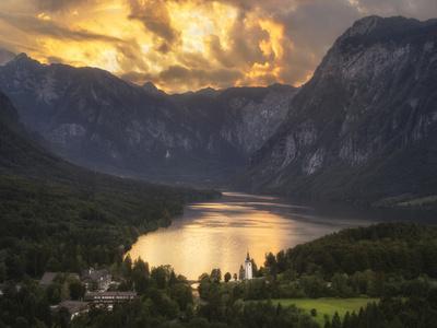 Europe, Slovenia, Bohinj - High View Over Lake Bohinj At Sunset