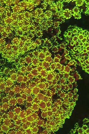 Fluorescing sponges and hard coral at Night dive, Wetar Island, Banda Sea, Indonesia