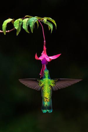 Green Violetear (Colibri thalassinus) feeding on a flower, Savegre, Costa Rica