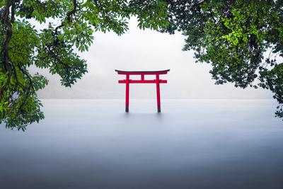 Red torii gate at lake Ashinoko, Hakone, Kanagawa Prefecture, Honshu, Japan